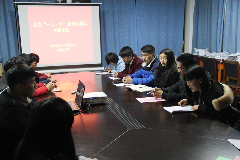 为纪念“一二·九”青年学生爱国运动80周年,弘扬爱国主义和集体主义精神,谱写青春之歌,增强青年团干的责任感、使命感,12月7日,池州职业技术学院团委组织院学生会干部开展纪念“一二·九”运动80周年主题团日活动。